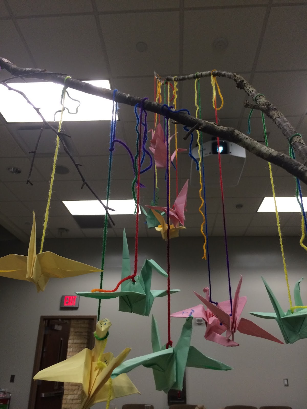 ^^^Look at our paper cranes we made with the kids! They each hung one for someone they cared about, and one of the kids hung one up there for me <3